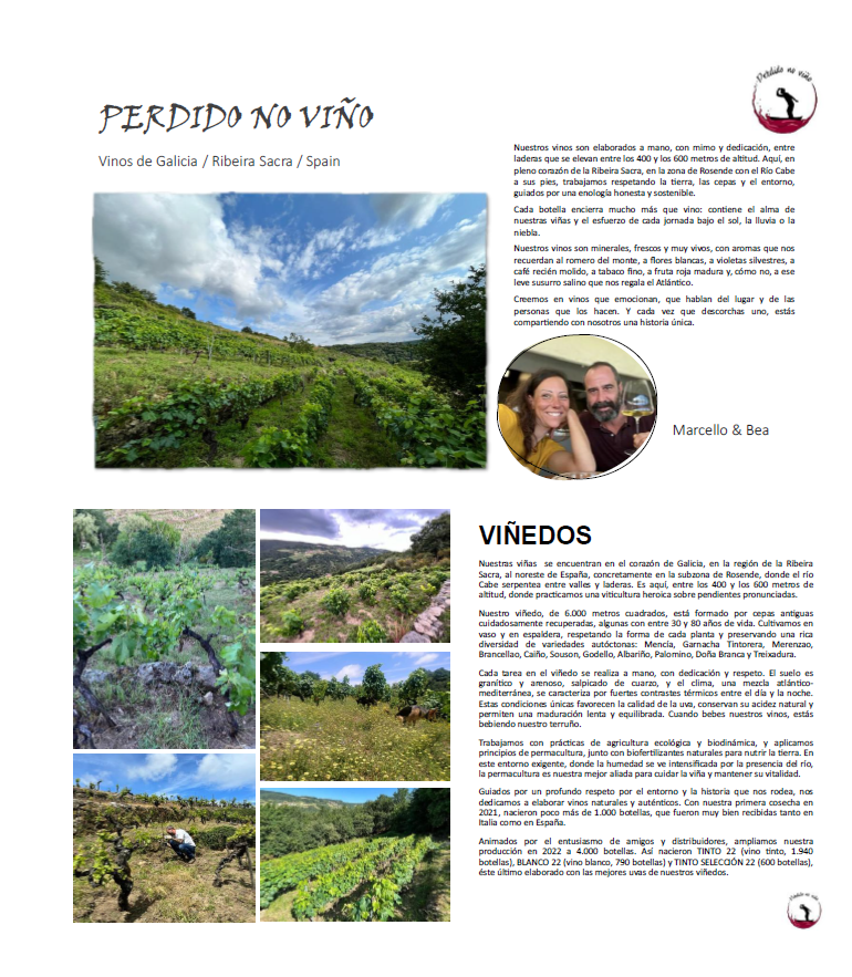 El río Sil es el eje de esta zona, y su influencia climática y geográfica es clave para el carácter único de los vinos. En este contexto surge el proyecto Perdido No Viño, una iniciativa apasionada que combina tradición, sostenibilidad y expresión del terruño.